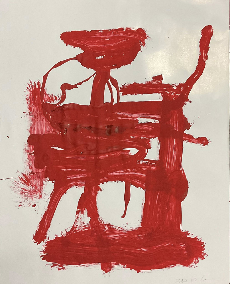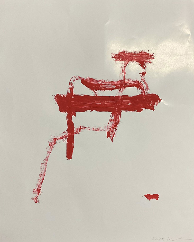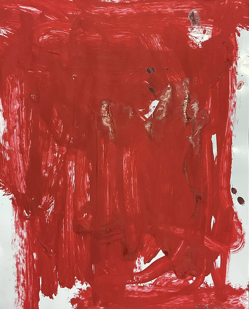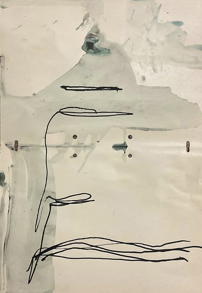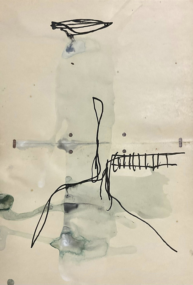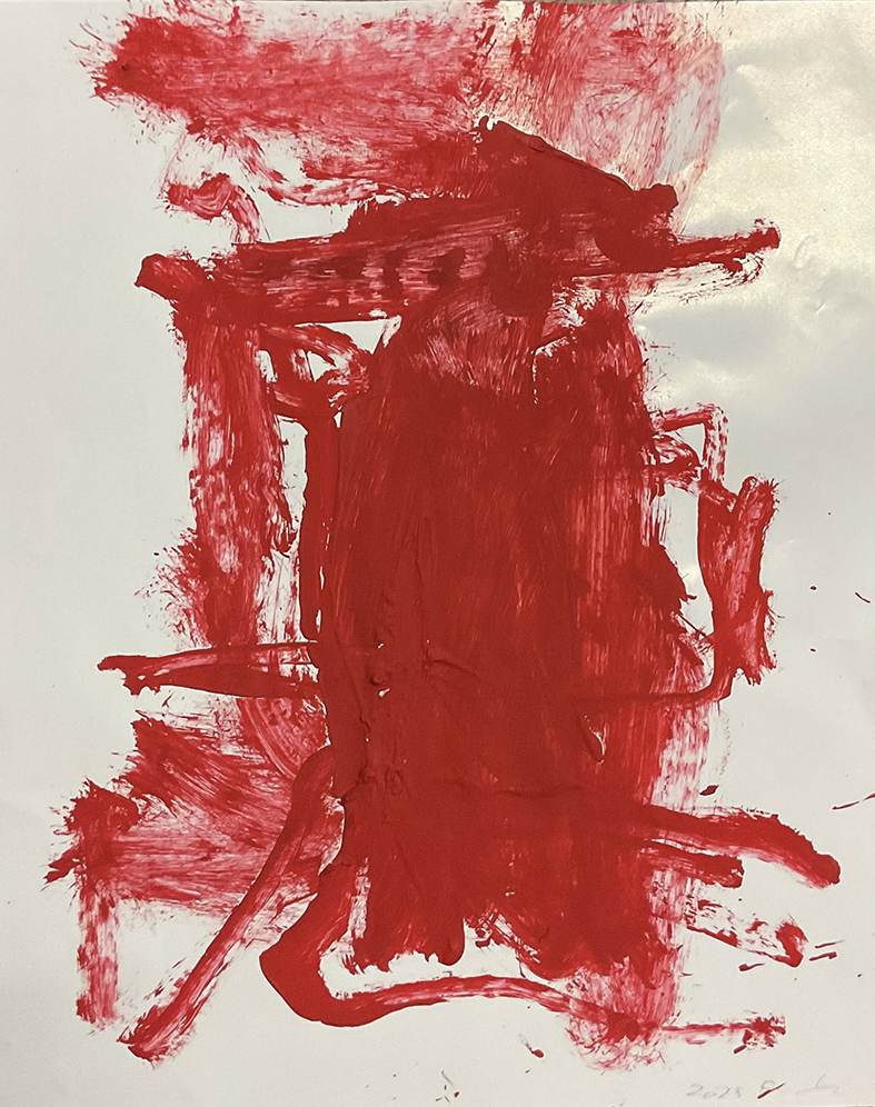 キャンバスにコラージュ、カラージェッソ、顔料マーカー