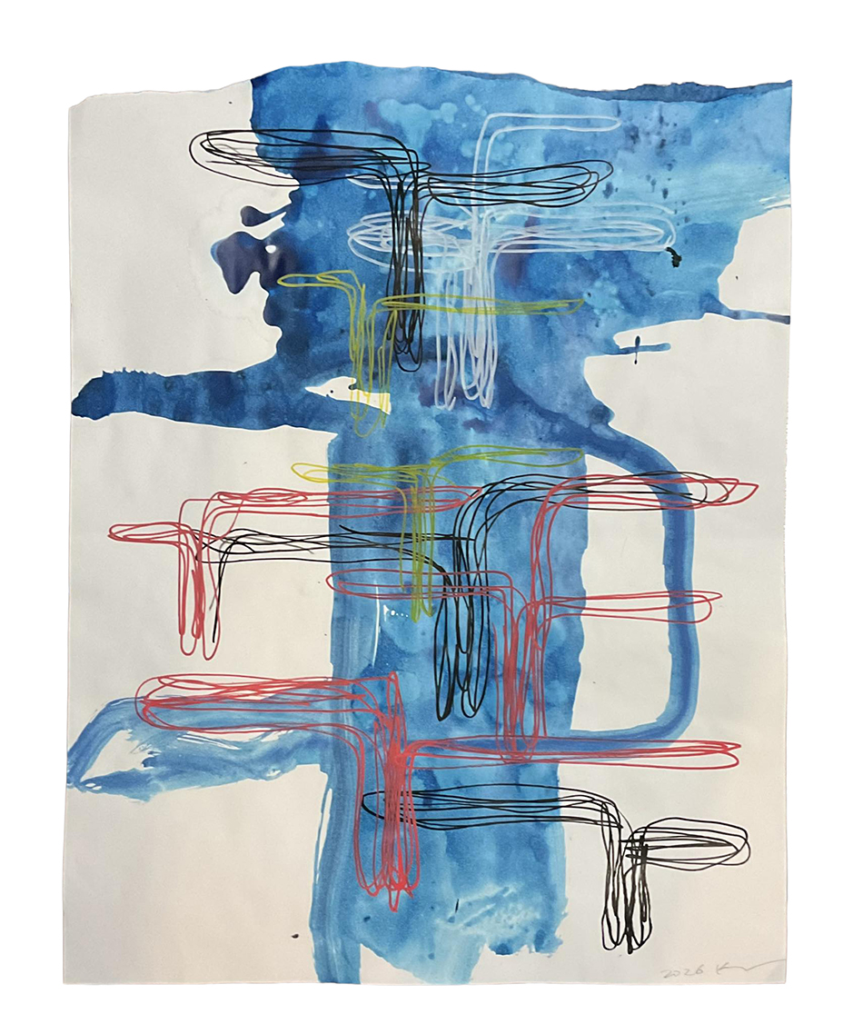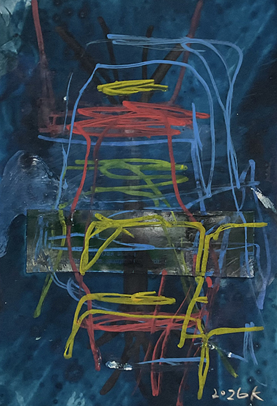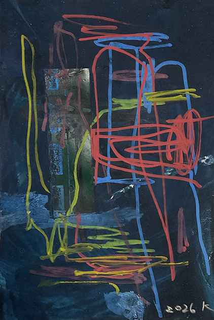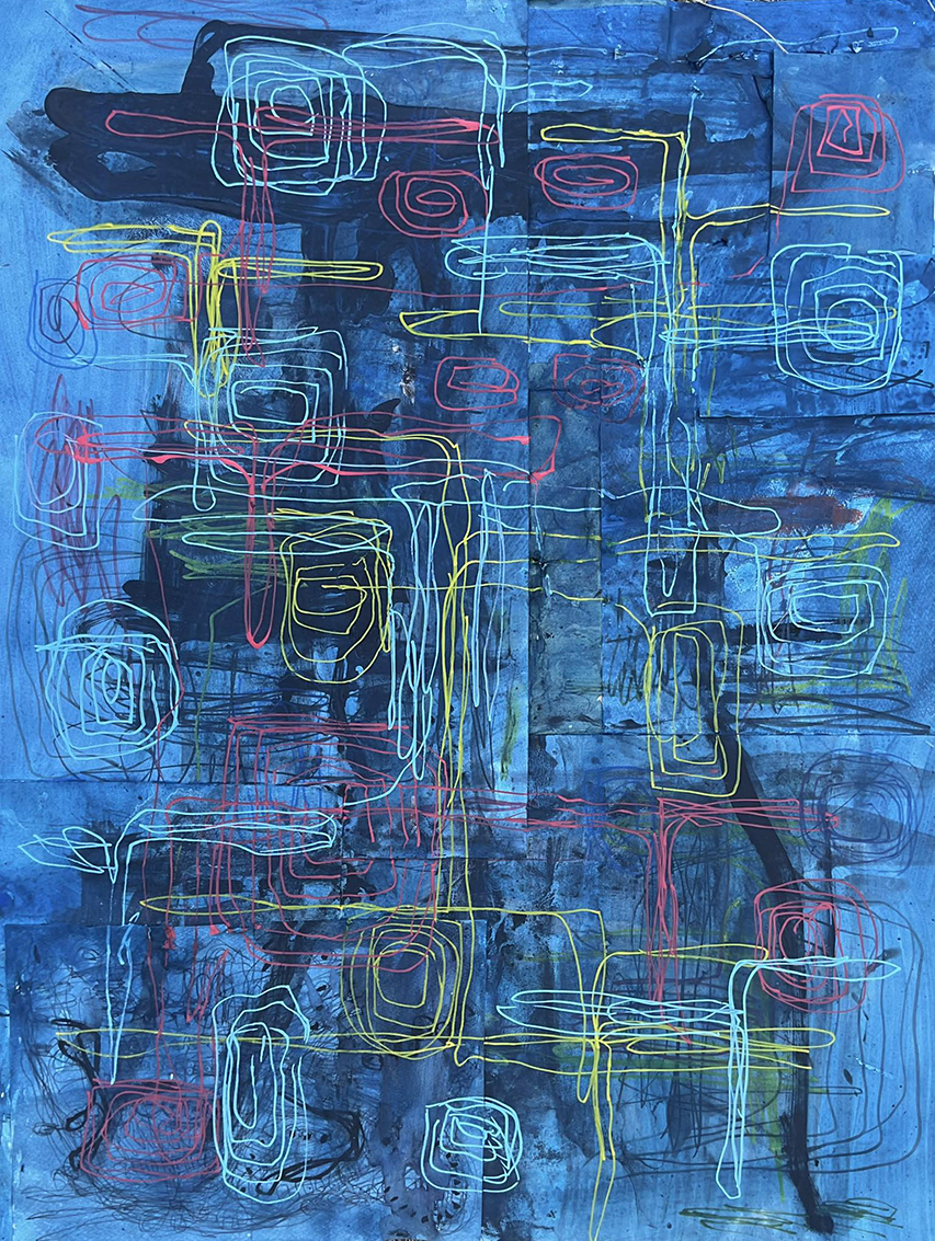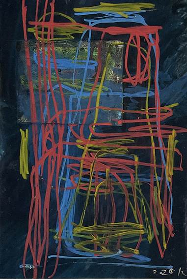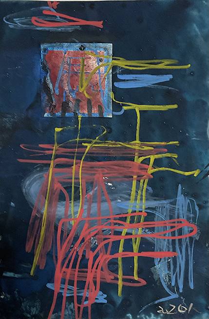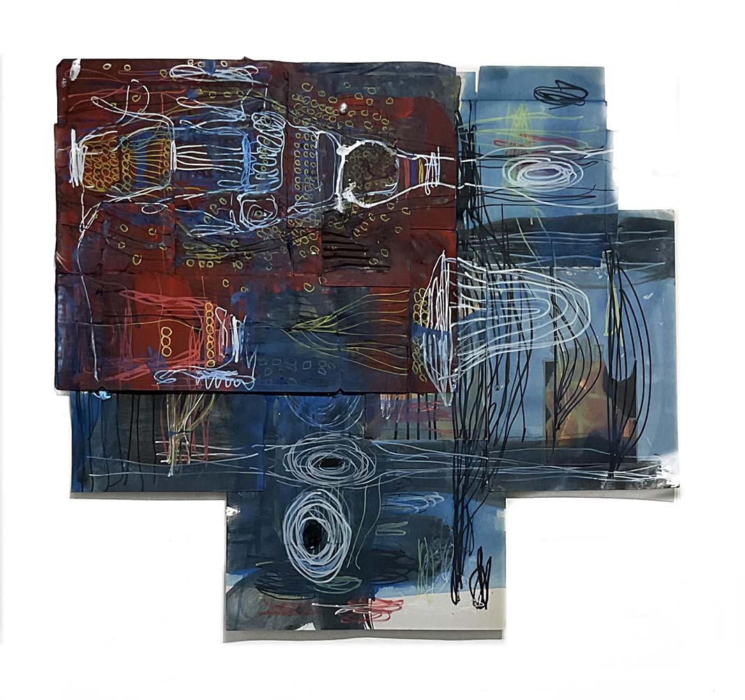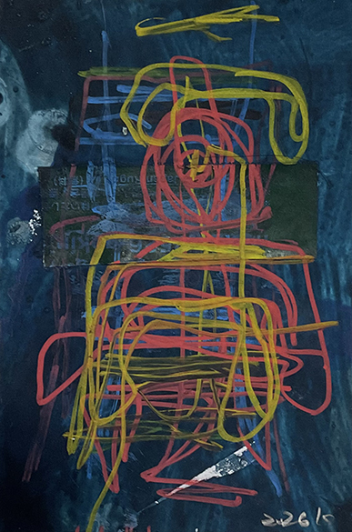 紙にコラージュ、ジェッソ、顔料マーカー