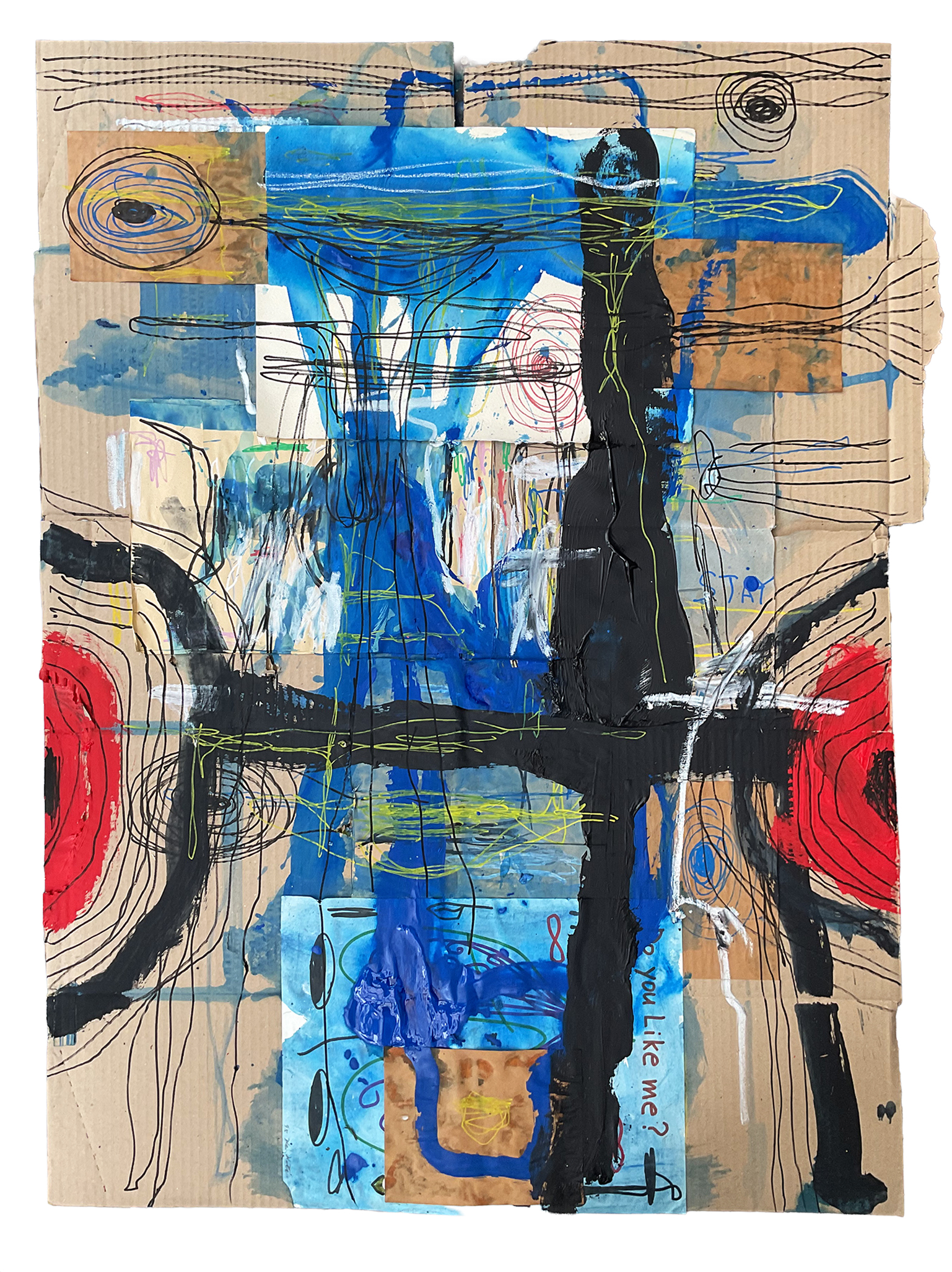 「女神」 79.4x104.0cm 段ボールにコラージュ、ジェッソ、顔料マーカー
