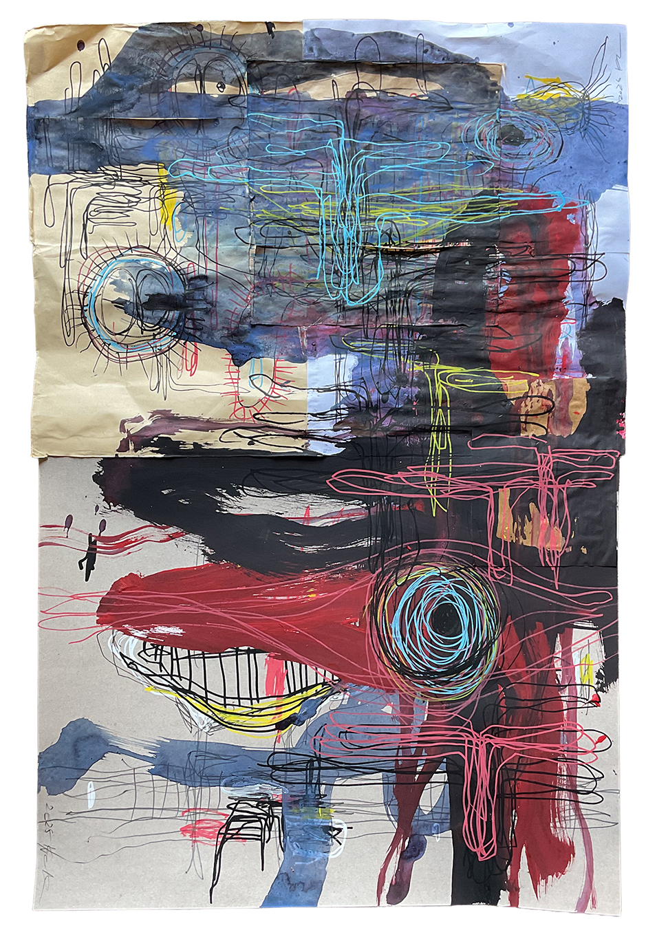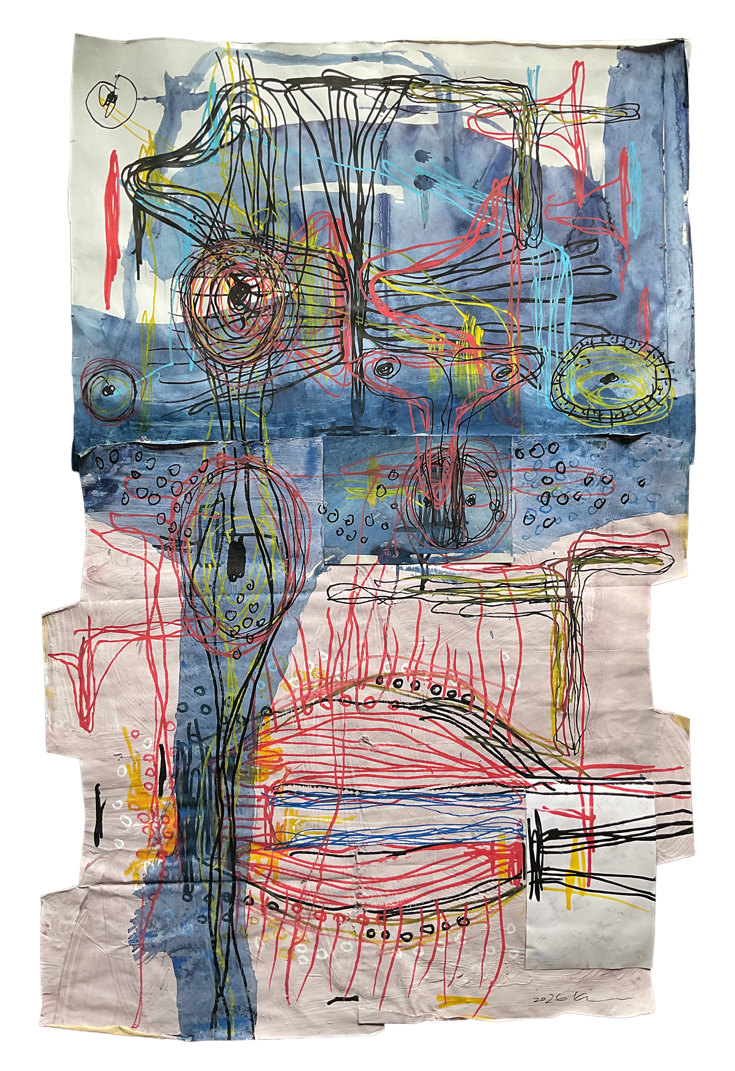 「銀河の春」 49.5x76.0cm 結合された紙にコラージュ、ジェッソ、顔料マーカー